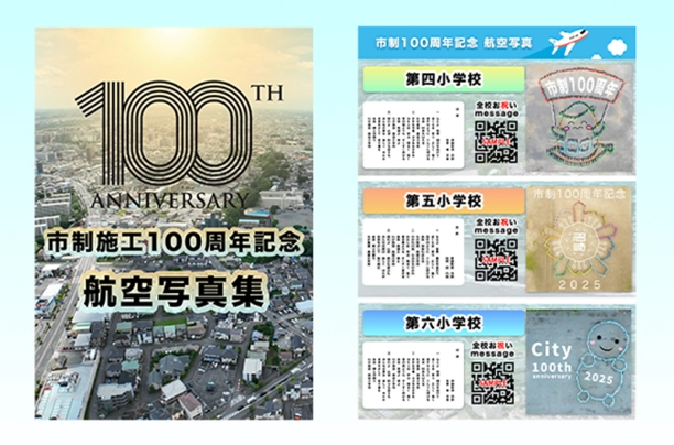 各学校で市制周年をお祝いする写真撮影・映像撮影を行い、記念クリアファイルや記念リーフレットを制作・発行し皆様が共通の記念品を手にすることで一体感と郷土愛を育みます。