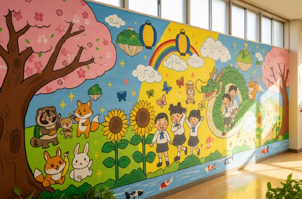 学校壁画アートの意義は、子どもの創造性・表現力・思考力・自己肯定感の育成、学習意欲の向上、空間の活性化、地域とのつながり強化、そして多様な価値観の理解促進にあります。単なる装飾に留まらず、全校児童・生徒や地域住民が一体となって制作することで、一体感や郷土愛、社会性を育み、学校を「ワクワクする」「通いたくなる」場に彩ります。
